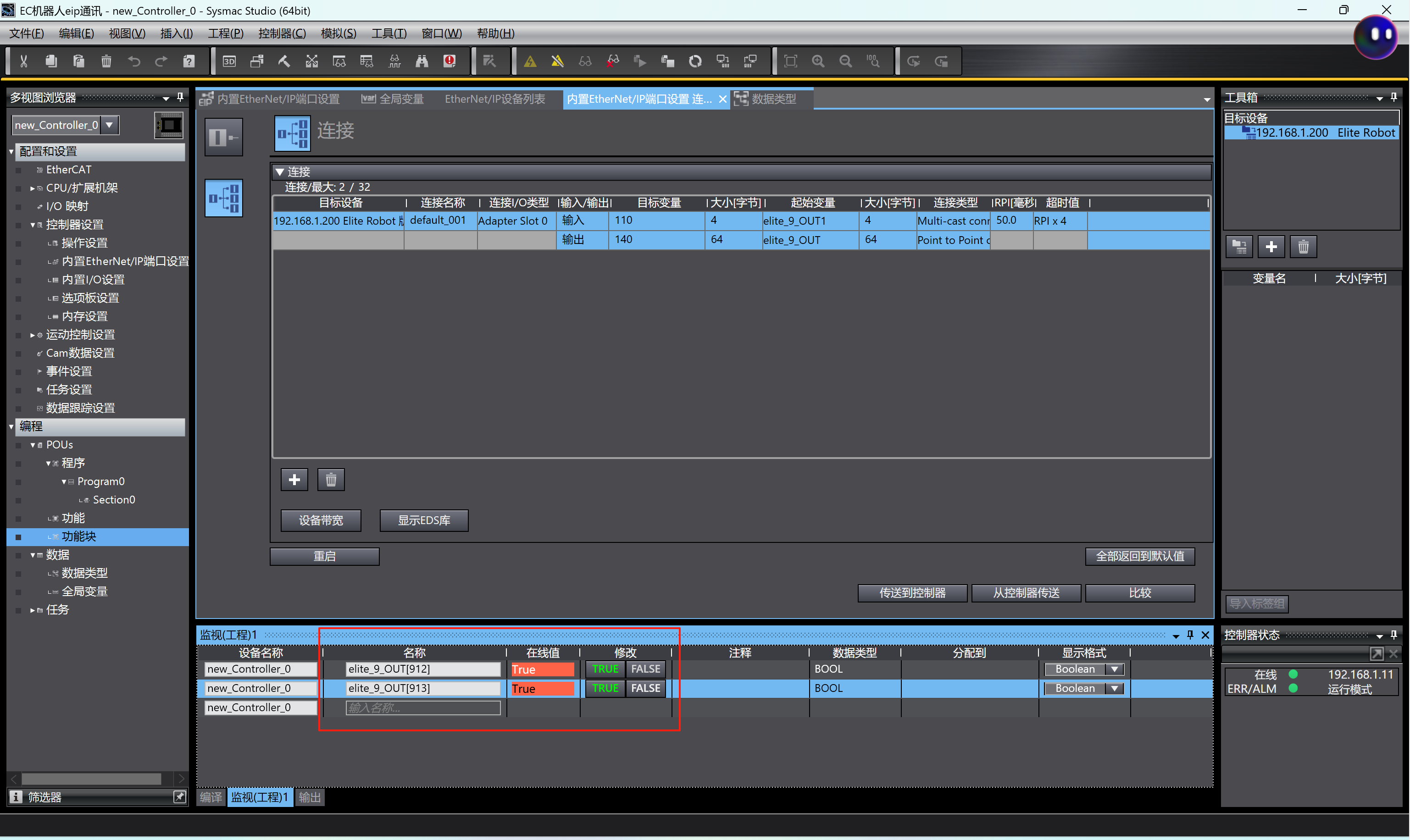 本篇文章使用EC机器人与欧姆龙PLC实现EthernetIP通讯 plc 型号:NX1P2-9024D