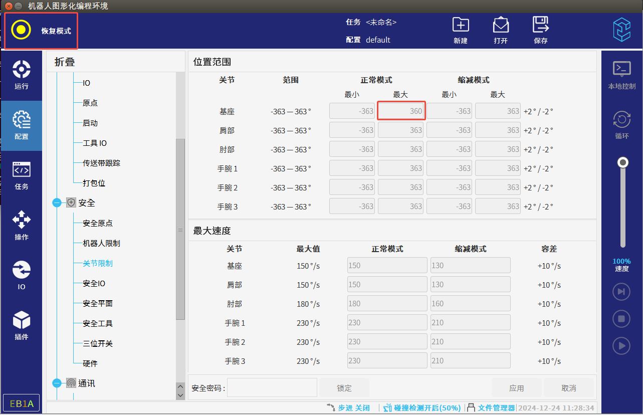 此时机器人就会进入恢复模式,只需要查看机器人对应的关节位置,把相应的关节移动至关节范围内即可操作方法如下