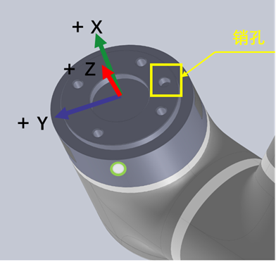 对于重心设置默认在法兰盘中心位置,可查看销孔位置以辨别出末端工装的重心是朝向那个方向,从而设置对应的参数。