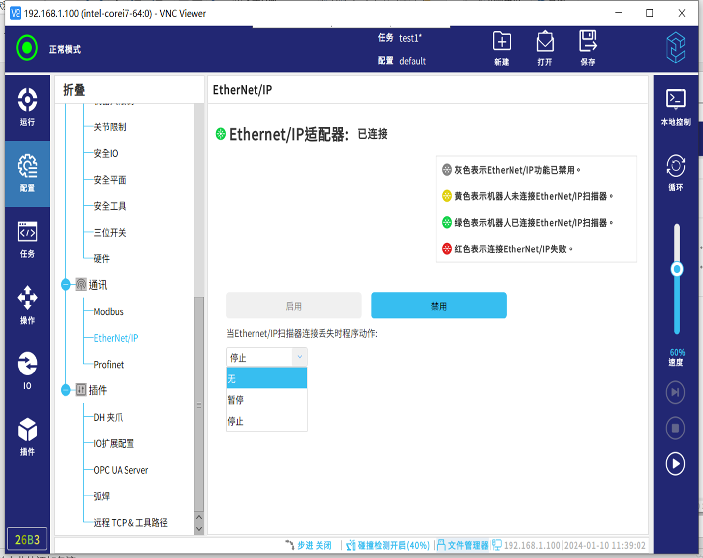 根据需要Ethernet/IP通讯连接不上选择程序动作是暂时/停止。