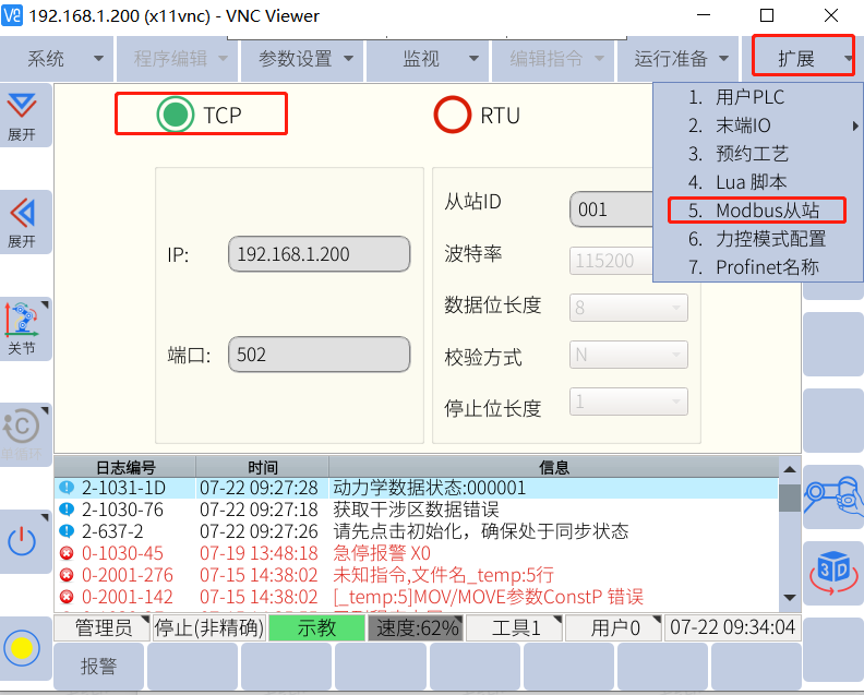 2-1. 配置机器人MODBUS_TCP