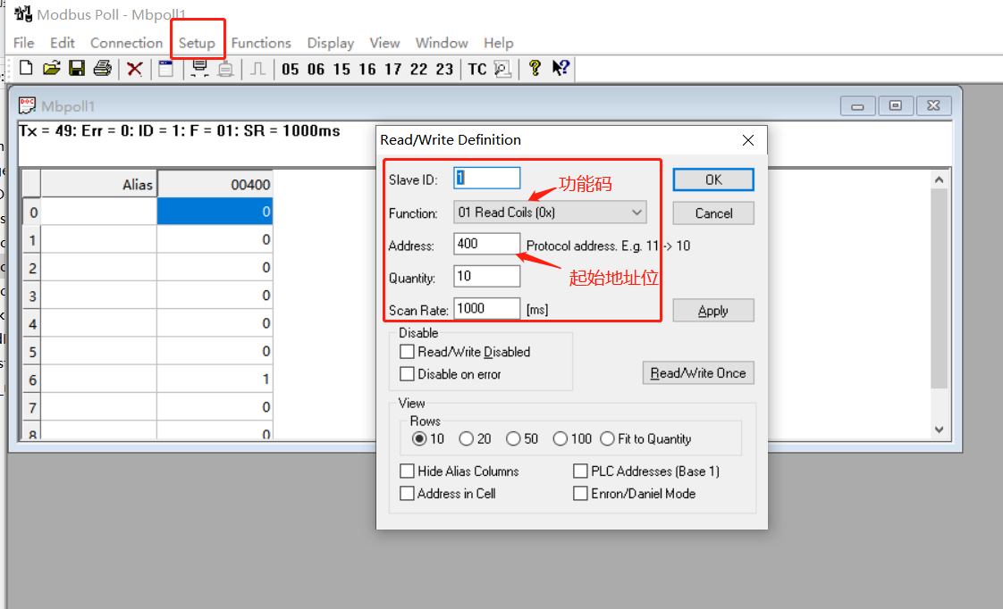 modbus_read_bits 读取线圈指令,功能码01