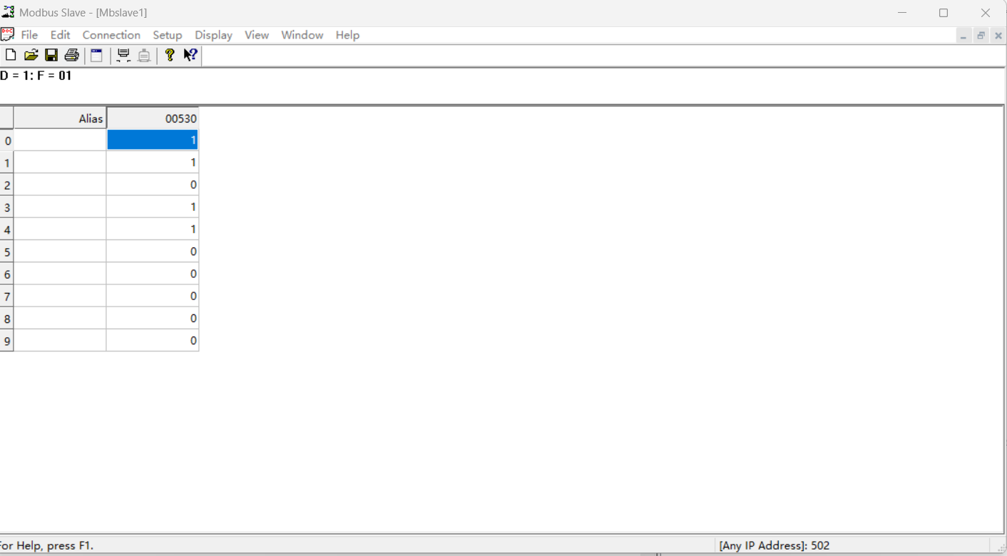 助手中可以查看到线圈530、531、533、534状态都为1,写入线圈功能及指令正常
