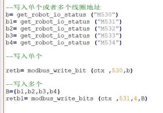写入单个和多个线圈指令,定义将M530数值写入到线圈530,M531-M534数值分别写入线圈531-534中
