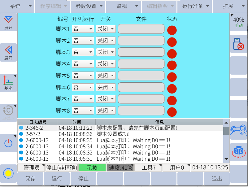 用户数据备份可备份出所有jbi和lua文件,也包括用户plc,全局变量及注释等;一般复制一台机器人应用的程序到另一台机器人的时候,可以使用用户数据备份;