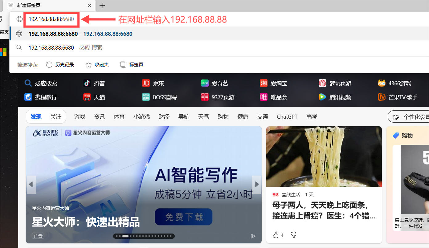 (2)"192.168.88.88:6680"里面的冒号必须是英文格式下的冒号,不然会访问失败。